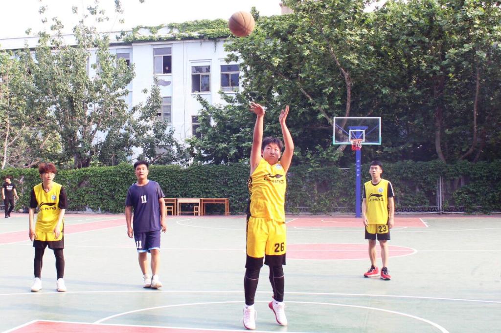 中圈跳球,两队争锋。部门篮球赛两队开局争先,激发球场热血。