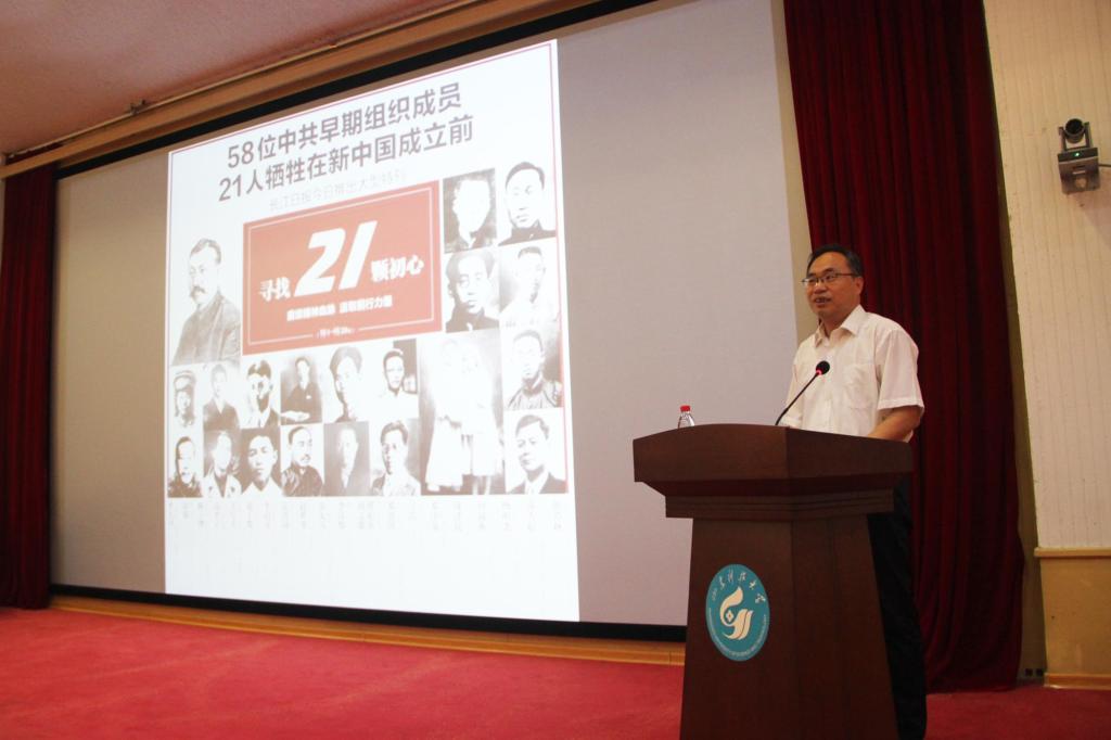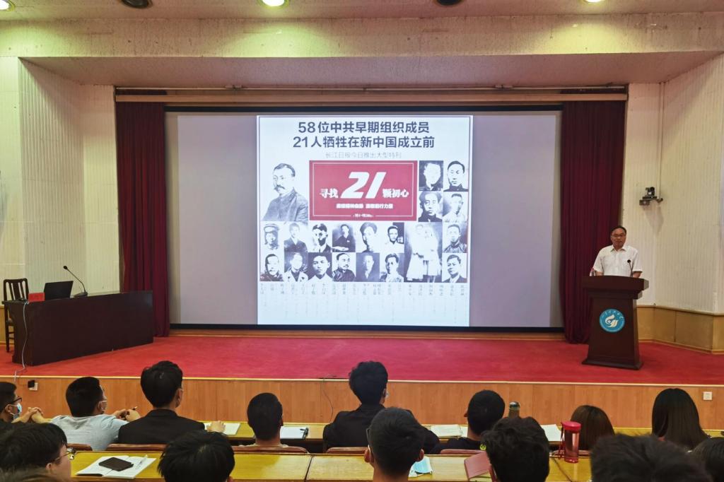 会上,高尚宇聚焦百年党史、立足发展宏图,带领与会人员共同回顾、感悟了邓恩铭、李汉俊等21位革命先烈的感人事迹,系统阐述解答了“中国共产党为什么能”“马克思主义为什么行”“中国特色社会主义为什么好”等热点难点问题。他指出,百年党史记述了共产党人革命、建设和改革的思想结晶,这其间有筚路蓝缕、以启山林的开拓智慧,有修齐治平、治国安邦的政治经验,有水能载舟、亦能覆舟的深刻启迪,有五湖四海、任人唯贤的用人方法……历史是过去的现实,现实是未来的历史,我们学习党史,就是要把历史财富转化运用到具体的工作实践中。他强调,一个国家的进步,镌刻着青年的足迹;一个民族的未来,寄望于青春的力量,广大青年要牢记习近平总书记的殷殷嘱托,以“生逢盛世,肩负重任”的历史使命感,继承和发扬包括21位烈士在内的革命先烈的遗志,释放青春激情、追逐青春理想,以青春之我、奋斗之我,为民族复兴铺路架桥,为祖国建设添砖加瓦。