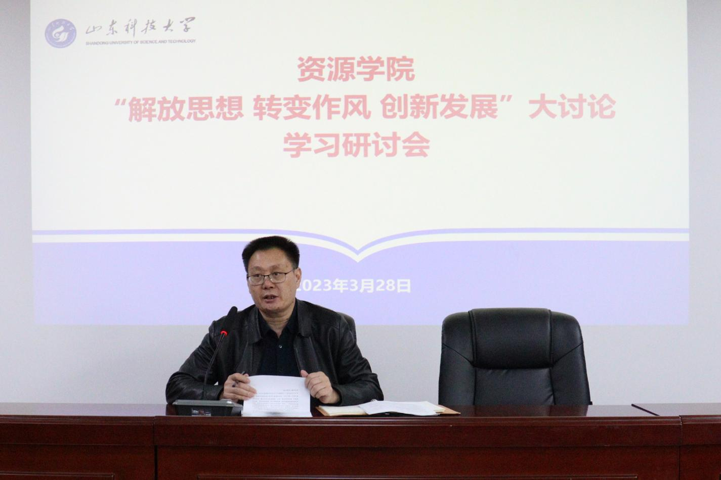 3月28日,必赢776net在2号楼201会议室召开全体教职工大会,进行“解放思想 转变作风 创新发展”大讨论专题学习,学院院长王清标出席会议并作总结讲话,学院全体教职工参加。