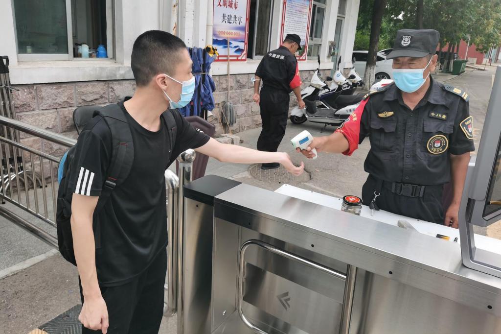 根据校区学团工作部下发的相关文件,学院坚持把师生的生命安全和身体健康放在首位,安排符合返校条件的学生有序返校。校门口,同学们佩戴口罩,经过健康码出示、人脸识别,方可进入校园。宿舍楼内,同学们须进行体温检测、信息登记等流程进入宿舍。食堂里,可口的饭菜早已做好,等待学子归来。