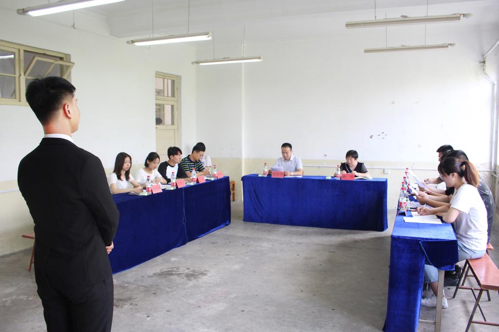 618日,必赢776net在3#506举行第二十三届学生会主席团换届竞选面试。学院党委副书记兼副院长程家国、团委书记洒艳、学院辅导员尹发利、王淦及第二十二届学生会主席团成员担任面试官,共有11位候选人参加。
