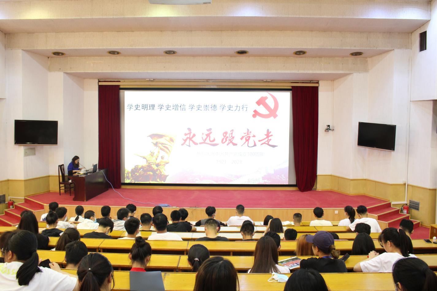 会上,卢业美以中共党史的基本脉络为主线,紧扣“不忘初心、牢记使命”,带领同学们回顾了中国共产党的诞生和发展历程。她表示,开展党史学习教育,是不忘初心、牢记使命,推进中华民族伟大复兴历史伟业的必然要求,是坚定信仰信念、在新时代坚持和发展中国特色社会主义的必然要求,是推进党的自我革命、永葆党的生机活力的必然要求。她强调,学习领悟党史是不忘初心、牢记使命的重要途径,同学们要增强党史学习的自觉性,凝心聚力跟党走,建功立业新时代。