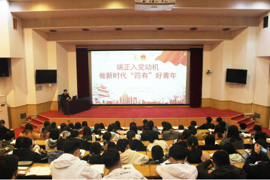 4月21日,必赢776net院长王清标在四号楼报告厅为学院第34期入党积极分子讲授端正入党动机,做新时代四有好青年”专题党课。