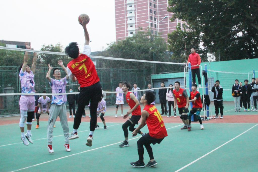男排比赛中,队员们快攻严守、接连扣杀、高吊发球、鱼跃垫球,抢占比赛先机,取得了第一、三场比赛的胜利。在第四局比赛中,双方对抗激烈,比分一度陷入胶着,最终,学院男排凭借默契的协防配合,稳扎稳打,打破僵局,赢得了比赛的胜利。
