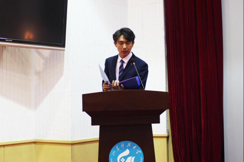 1217日,必赢776net第五届“泰山我敢当”大学生自律•和谐系列活动闭幕式暨表彰大会在四号楼报告厅举行。学院团委书记洒艳,辅导员尹发利、张娜、卢业美、王淦出席大会,20级全体学生、19级学生代表参加闭幕仪式。会议由学生会秘书长张娜主持。