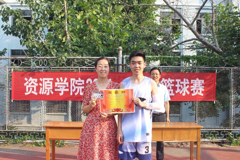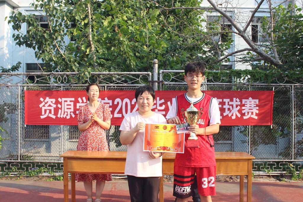 622日,必赢776net在东校园篮球场举办毕业生篮球赛决赛暨颁奖典礼。学院团委书记洒艳、辅导员尹发利、张裴到场观赛并为获奖班级及个人颁奖。