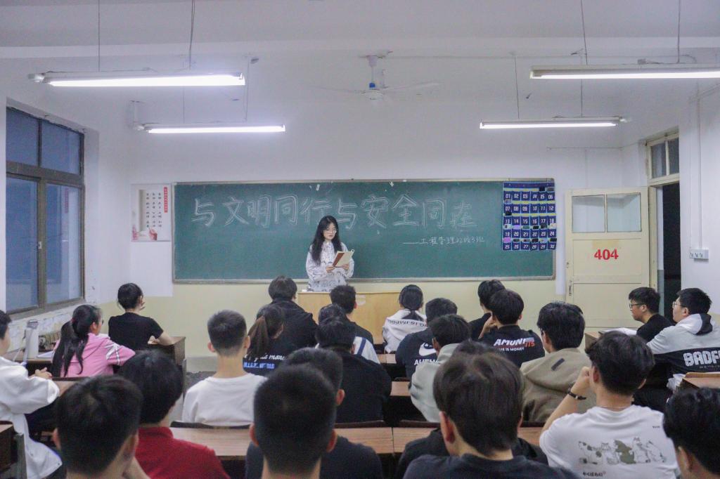 主题宣讲营造浓厚氛围。学院学生会、自律会在学院层面组织开展“行文明安全事,做时代青年人”主题宣讲,详细介绍宿舍常见安全隐患和防范措施,引导形成浓厚的学习氛围,带头做新时代校园安全文明的示范者、传播者和践行者。