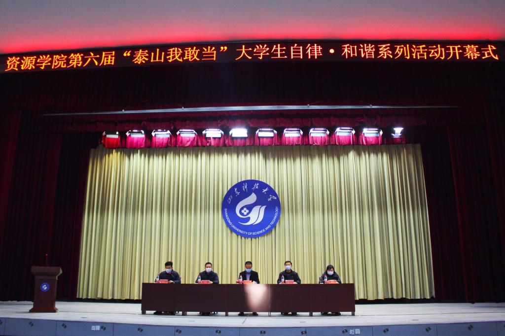 11月10日,必赢776net第六届“泰山我敢当”大学生自律·和谐系列活动开幕式在东校园礼堂举行。学院党委副书记兼副院长程家国、学团工作部张志刚、陈帅等有关负责人,学院团委书记、学工办主任洒艳出席本次活动,2021级全体学生参加。开幕式由学院辅导员兼学生会秘书长王淦主持。