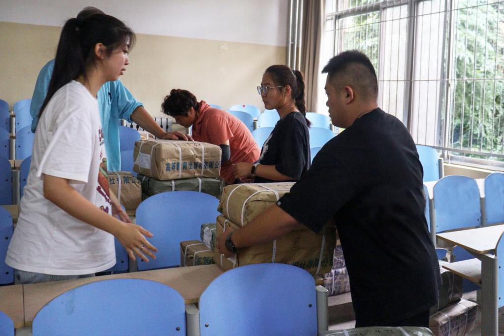 教材领取现场,负责老师将教材按照班级摆放到位,指导学生清点、核对、领取教材。教材领取过程中,各班级自觉排队,按照“领取分批、班级分散、错时错峰”原则,有序、高效地完成了教材分发任务,保障了新学期教学工作的顺利开展。(文:许浩然 图:王传纪