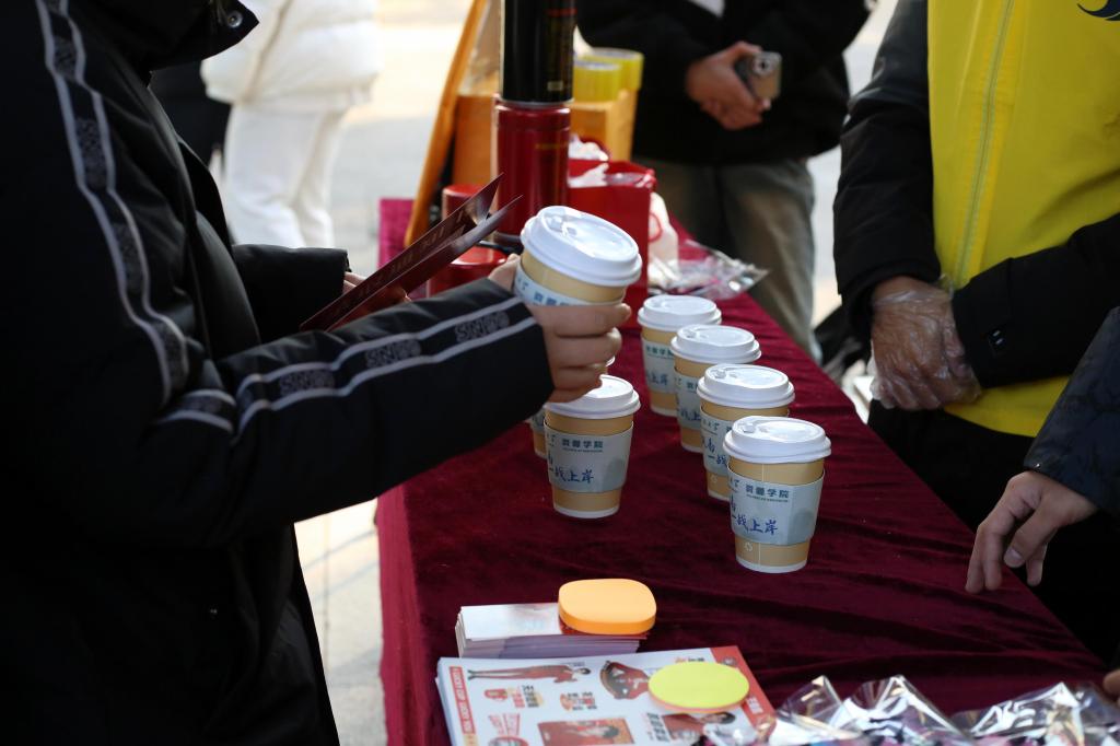 “研途漫漫,志坚如磐;茶韵悠悠,情暖人心。”“香茗氤氲,助力梦翔;愿君此行,谱写华章。”……展板上句句祝福语都饱含着对考研学长的诚挚问候与衷心祝愿。活动开始前,学生会工作人员提前将展板、茶具等规整摆放,设置打卡拍照点,营造出了浓厚的活动氛围。活动现场,暖人心脾的热茶、“幸运咖”提供的丰富礼品、饱含深情的祝福话语都一一送到考研学子的手中,让大家在初冬感受到了来自学院的关怀和温暖,坚定了考研必胜的决心和信心。