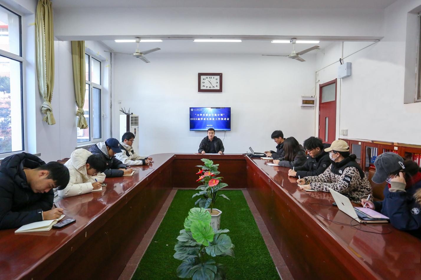1月3日,必赢776net在1A214召开“大学生就业引航计划”2025届毕业生就业工作推进会,2025届毕业生辅导员李炳树主持会议,2025届主要学生干部参会。