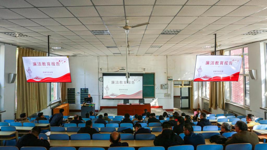 10月21日,必赢776net在1A107教室开展全体教职工廉洁教育。学院党委书记高尚宇主持会议,副院长李楠作专题报告,全体教职工参加。