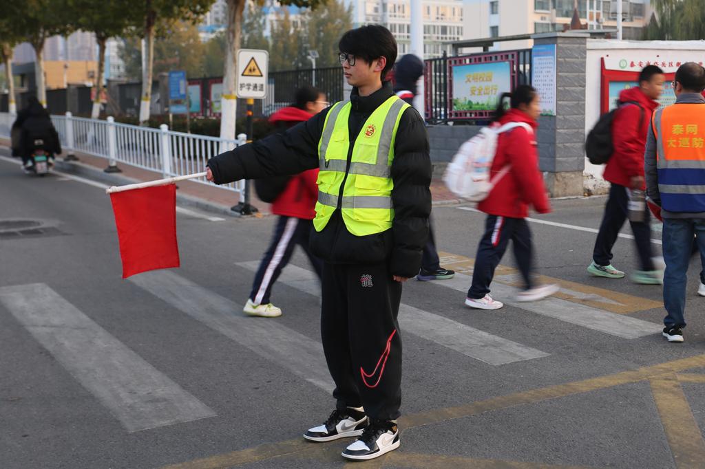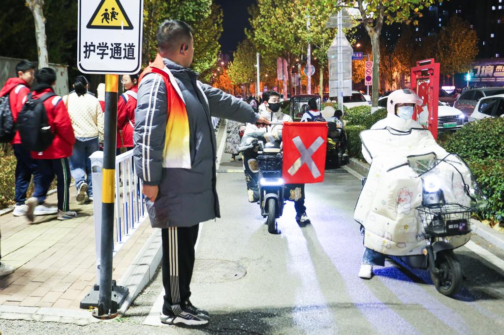 “同学,请走斑马线”“家长您好,电动车请停放在指定区域”……一声声温馨的提示,一次次耐心地引导,志愿者们用微笑和耐心传递着文明交通的理念。傍晚时分,天色渐暗,志愿者们手中的引导旗在路灯映照下格外醒目,他们始终坚持岗位,确保最后一名学生安全离校。