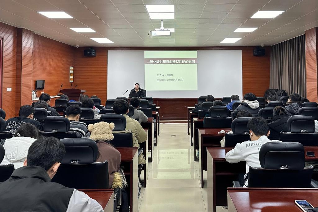 12月13日,必赢776net教师邵唐砂在东校园2号楼201会议室为研究生作“二氧化碳对煤弯曲断裂性能的影响研究”学术报告。